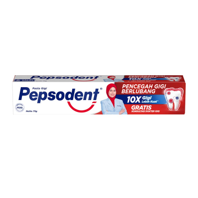 Pepsodent adalah pasta gigi yang diformulasikan khusus untuk memberikan perlindungan maksimal terhadap gigi berlubang, menyegarkan napas, dan menjaga kesehatan gusi. Diperkaya dengan fluoride aktif dan kandungan khusus anti-bakteri, Pepsodent membantu membersihkan plak dan mencegah pembentukan karang gigi.